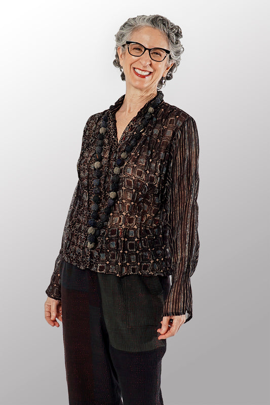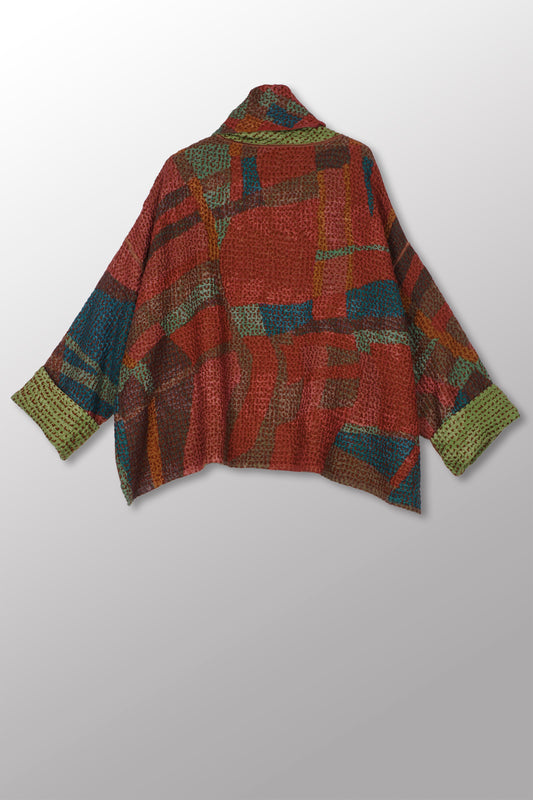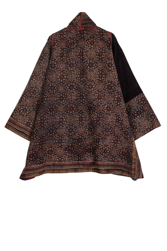 AJRAKH & COTTON OMBRE PATCH KANTHA A-LINE JACKET - ac2003-brn -