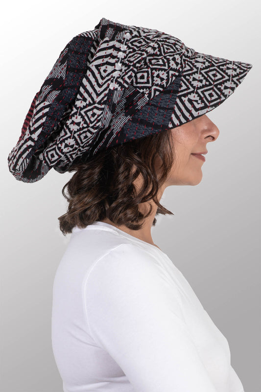 ABSTRACT WAFFLE KANTHA HALF BRIM HAT - bw3881-red -