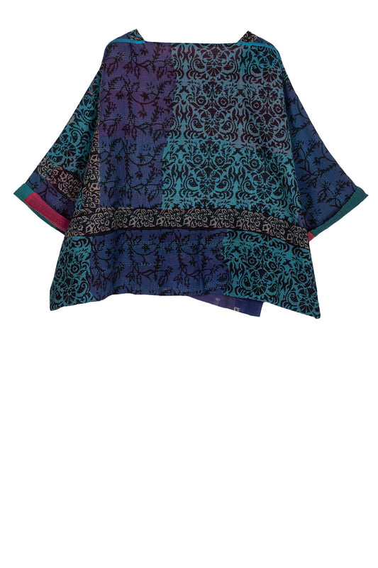 BAGH PRINT KANTHA 3/4 SLV. CROP TOP MIO - bg2538-blu -