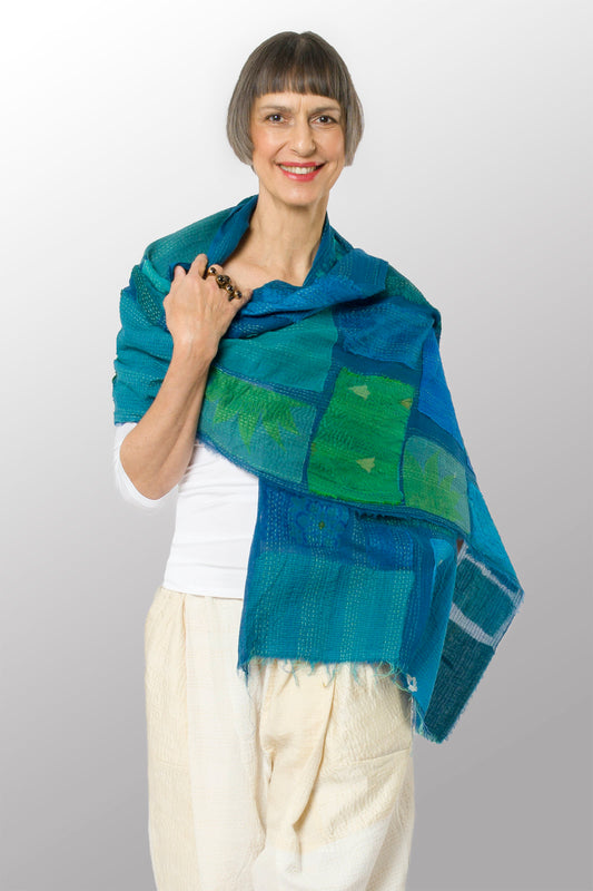 TONAL TILE PATCH KANTHA SCARF STANDARD - tt2801-blu -