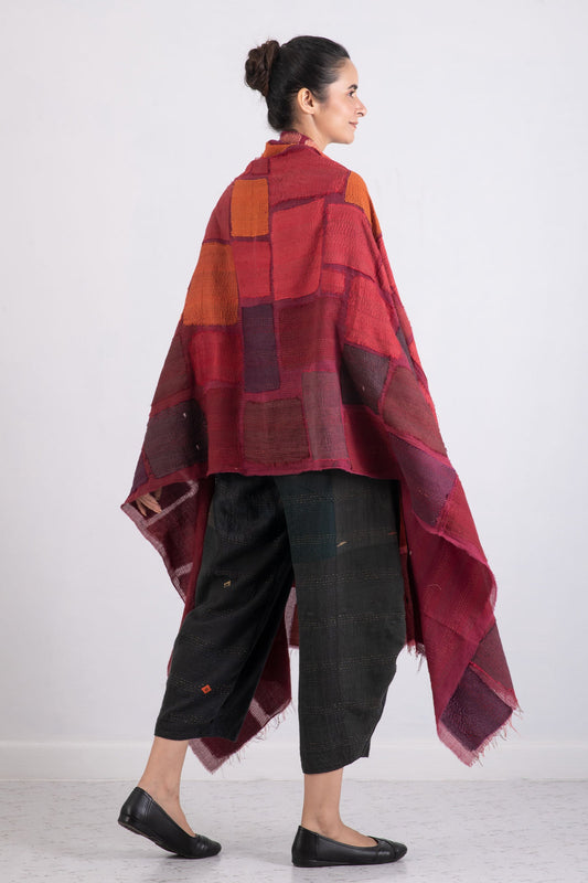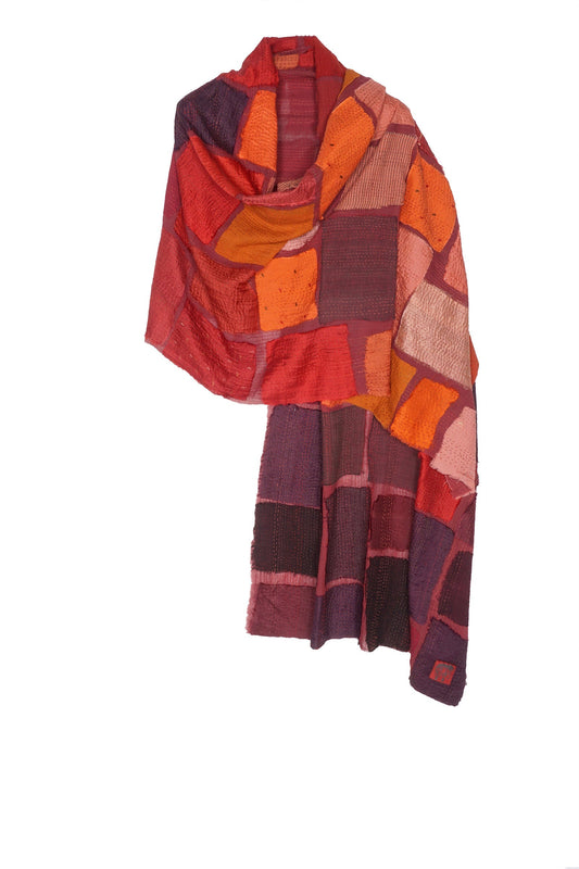 TONAL TILE PATCH KANTHA SHAWL MEDIUM - tt2802-red -