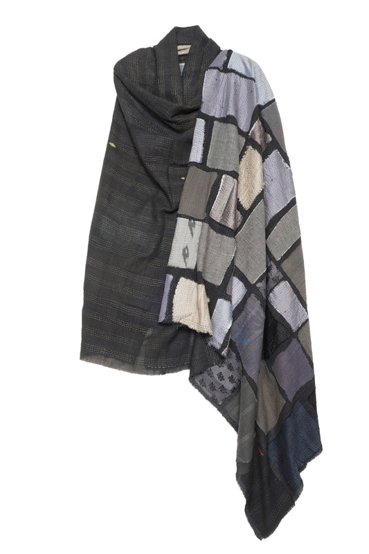 TONAL TILE PATCH KANTHA SHAWL MEDIUM - tt2802-blk -