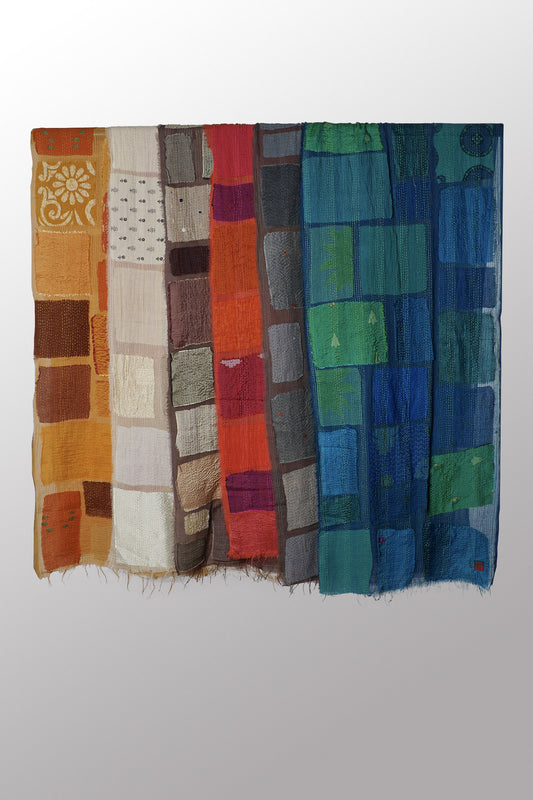 TONAL TILE PATCH KANTHA SCARF STANDARD - tt2801-ivy -