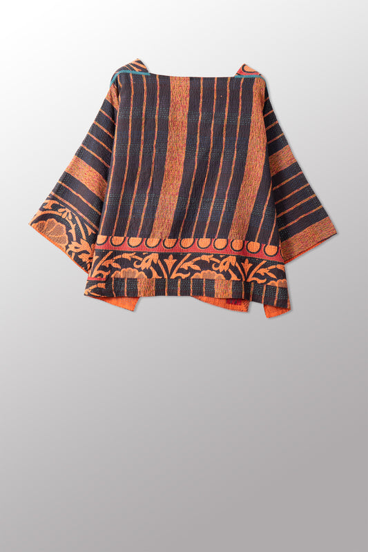 VINTAGE BOTTOM PRINT KANTHA A-LINE JKT - vb2003-blk -