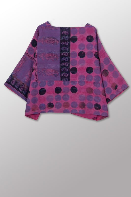 VINTAGE COTTON & NEW VOILE KANTHA 3/4 SLV. CROP TOP MIO - cn2538-0003a -