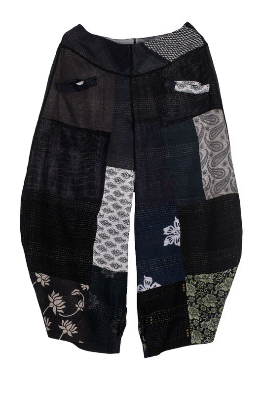 VINTAGE BOTTOM PRINT KANTHA HAREM PANTS - vb2605-blk -
