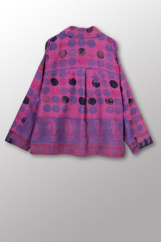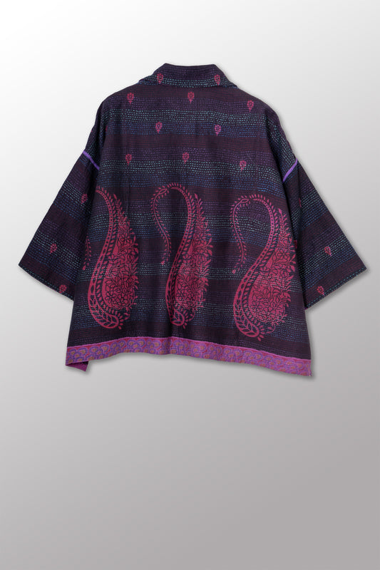 VINTAGE COTTON & NEW VOILE KANTHA CROPPED SHIRT JACKET - cn2075-0002a -