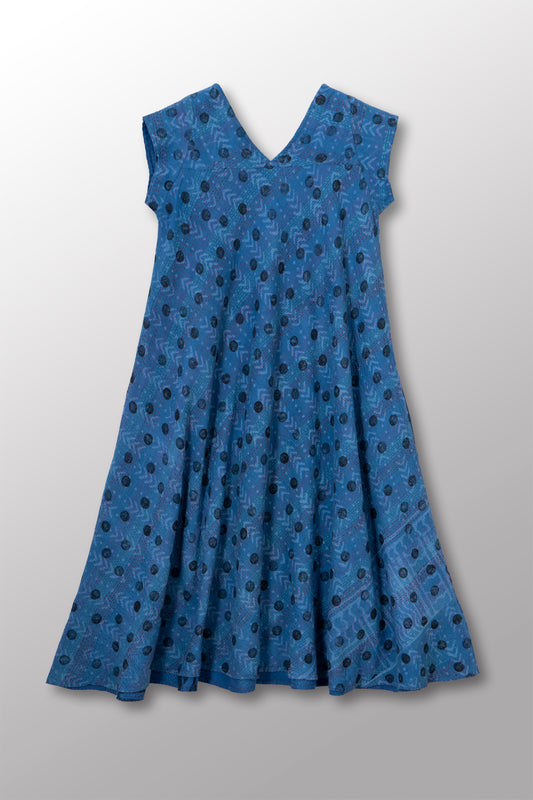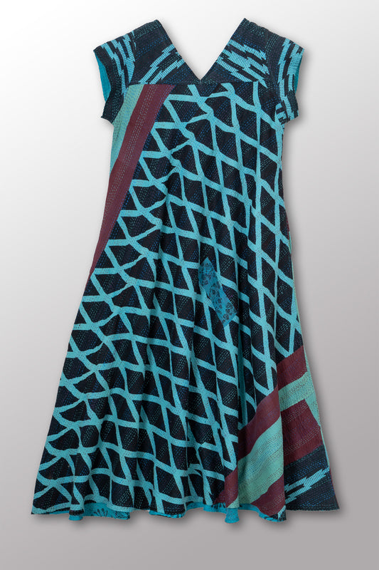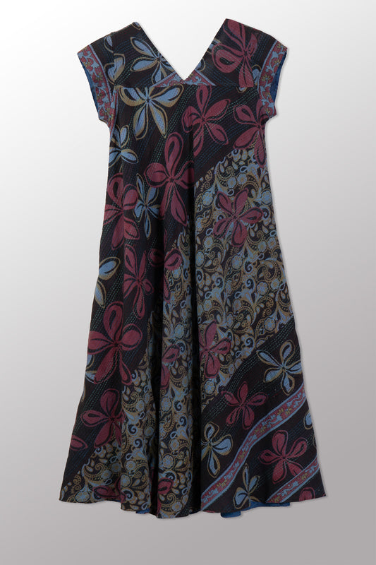 VINTAGE COTTON & NEW VOILE KANTHA CAP SLV. FLARE DRESS - cn2425-0008s -