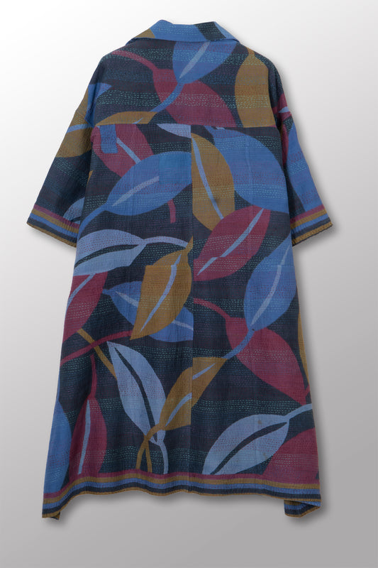 VINTAGE COTTON & NEW VOILE KANTHA 3/4 SLV. SHIRT DRESS - cn2459-0001s -