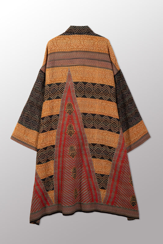 VINTAGE COTTON & NEW VOILE KANTHA KIMONO LONG JACKET - cn2005-0001a -