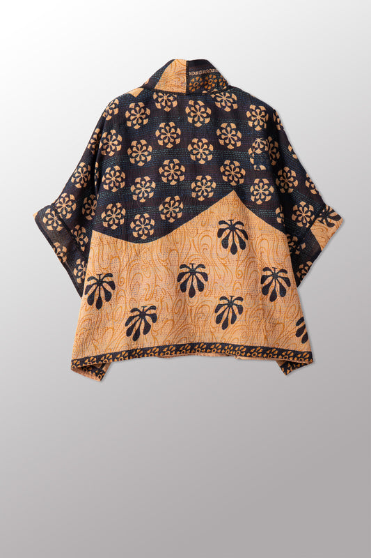 VINTAGE COTTON & NEW VOILE KANTHA MINI PONCHO - cn2060-0001a -