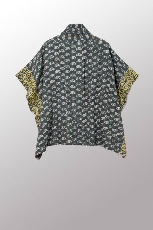 VINTAGE COTTON & NEW VOILE KANTHA PONCHO TOP - cn2568-0002a -