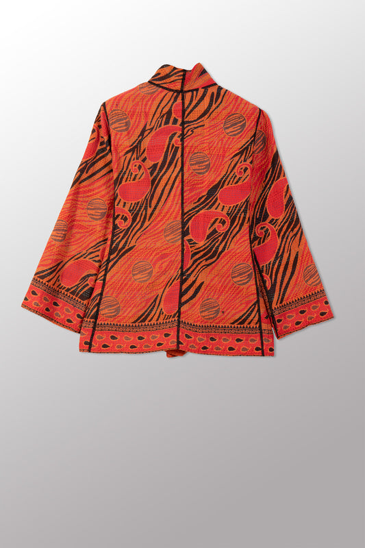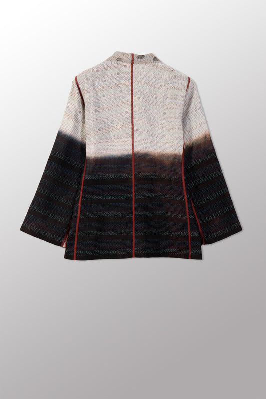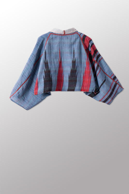 VINTAGE COTTON & NEW VOILE KANTHA STAND COLLAR CROPPED JACKET - cn2034-0001a -