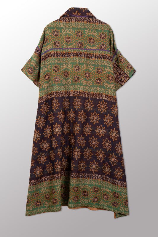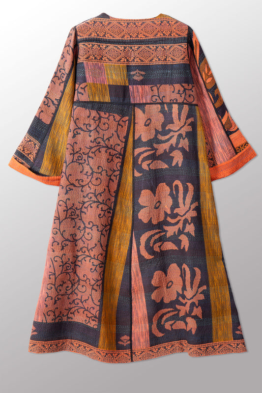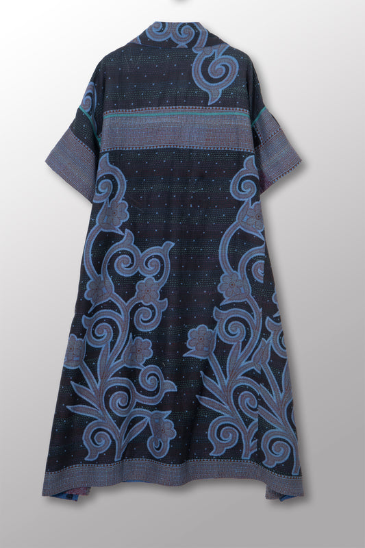 VINTAGE COTTON & NEW VOILE KANTHA WRAP FLARE COAT - cn2330-0001a -