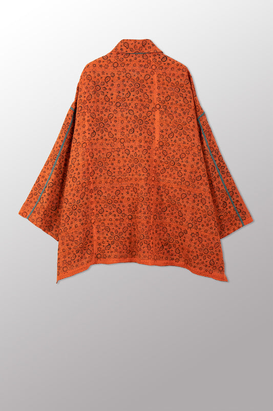 VINTAGE COTTON & NEW VOILE KANTHA OVERSIZED MINI COAT - cn2332-0001a -