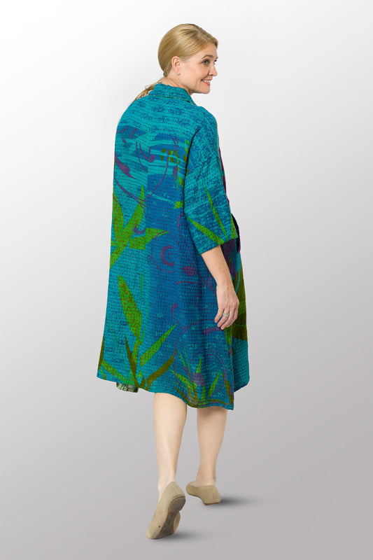 VINTAGE COTTON KANTHA 3/4 SLV. A-LINE DUSTER - cv4324-0005a -