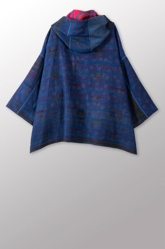 COTTON OVERDYE KANTHA HOODIE PONCHO - ov4064-cblu007a -