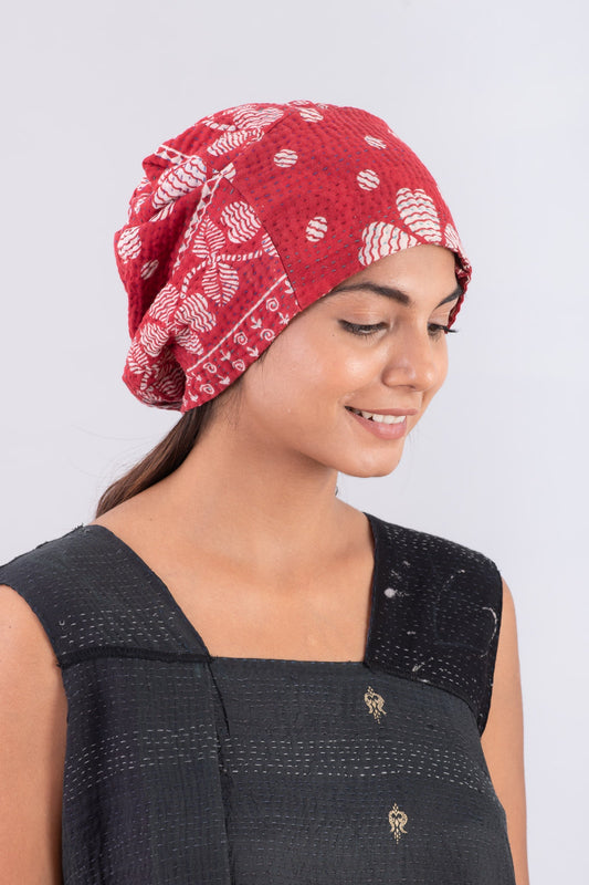 VINTAGE COTTON KANTHA 4 CORNER HAT - cv4883-red -
