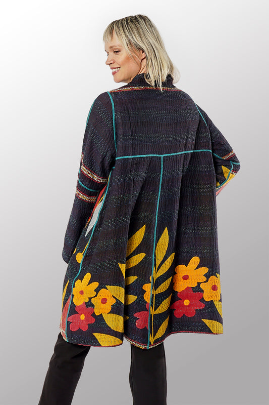VINTAGE COTTON KANTHA A-LINE COAT - cv4309-0064a -