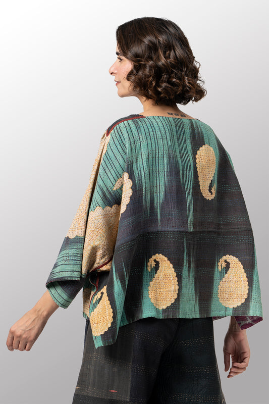 VINTAGE COTTON KANTHA 3/4 SLV. CROP TOP MIO - cv2538-0029a -