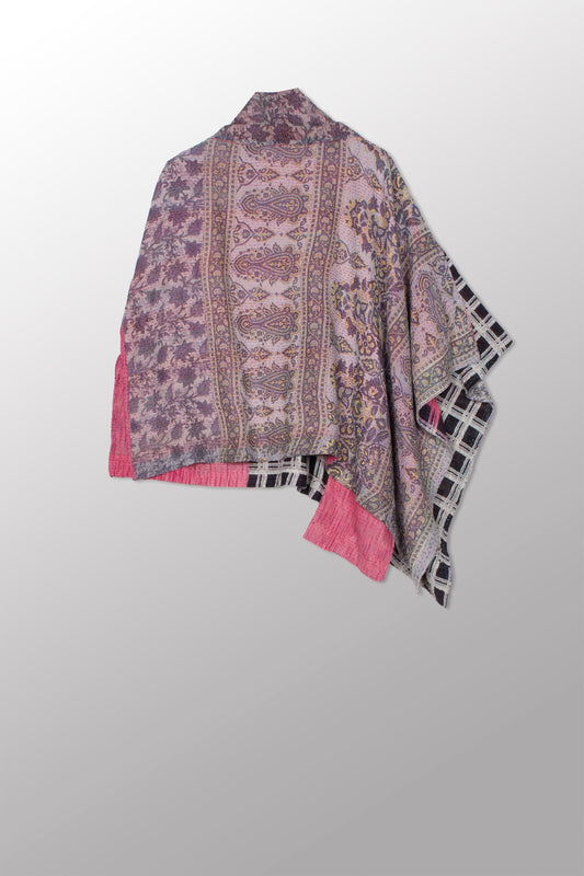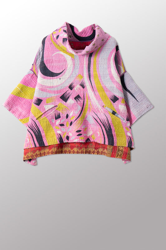 VINTAGE COTTON KANTHA COWL NECK WIDE CAPE - cv2843-pik -