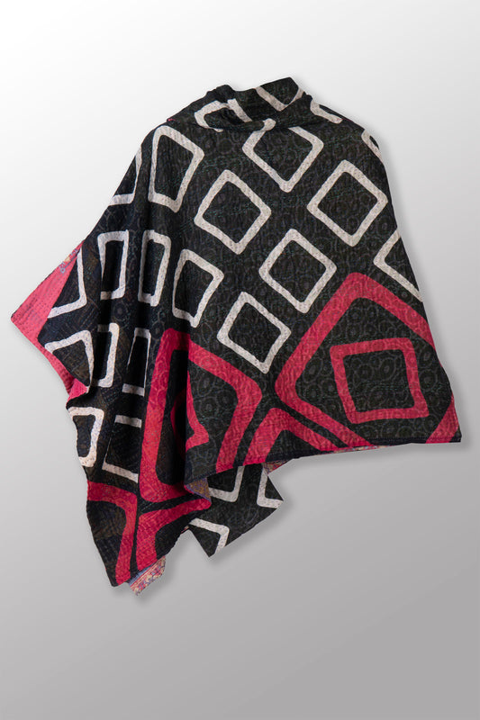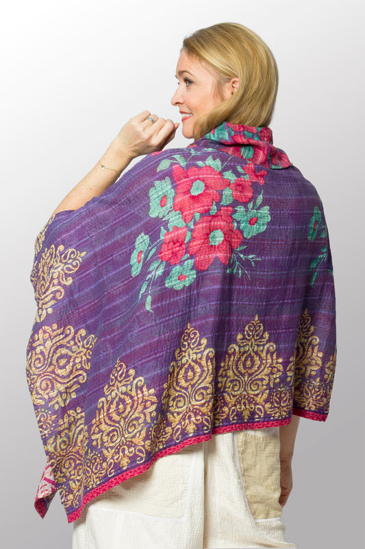 VINTAGE COTTON KANTHA COWL NECK PONCHO - cv4061-0032a -