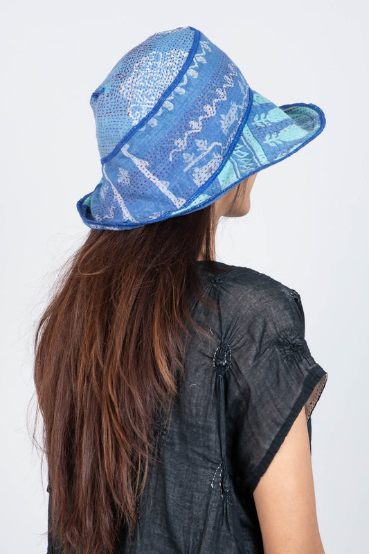 VINTAGE COTTON KANTHA CIRCULAR CUT BRIM HAT - cv2882-blu -