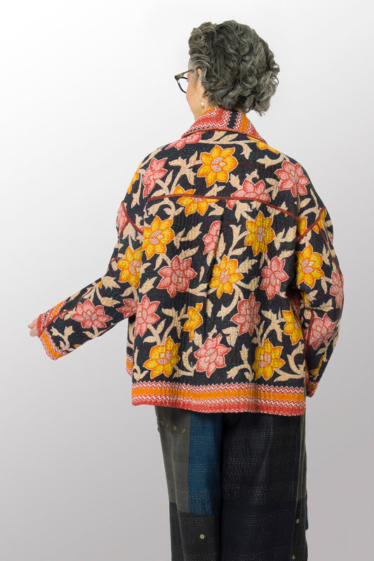 VINTAGE COTTON KANTHA DOLMAN SHORT JKT - cv4015-0024l -