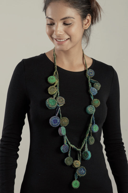 VINTAGE COTTON KANTHA EDDY LONG NECKLACE - cv2716-grn -