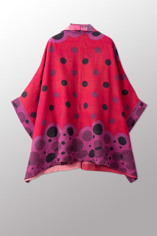 VINTAGE COTTON KANTHA DOUBLE COLLAR PONCHO - cv4323-0055a -
