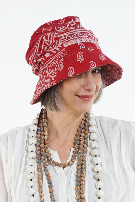 VINTAGE COTTON KANTHA FULL BRIM HAT - cv4889-red -