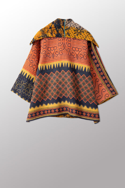 VINTAGE COTTON KANTHA DOUBLE COLLAR PONCHO - cv4323-0049a -