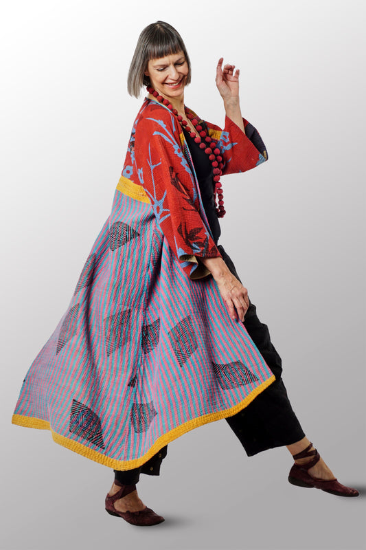 VINTAGE COTTON KANTHA KIMONO LONG JKT - cv4005-0141a -
