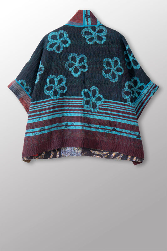 COTTON OVERDYE KANTHA MINI PONCHO - ov4060-cblu004a -