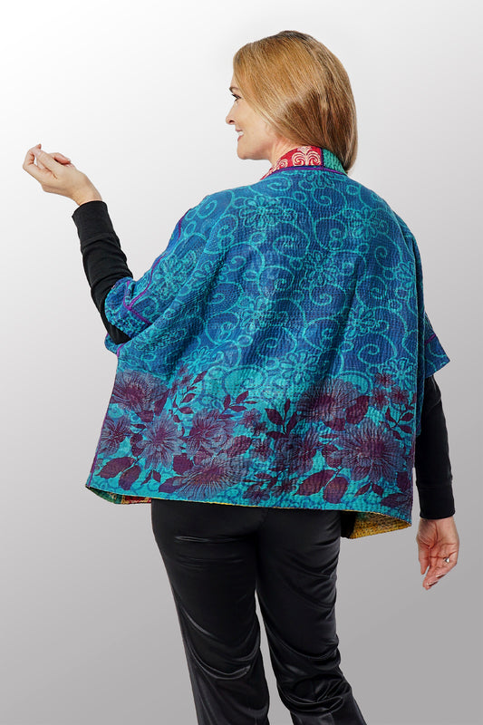 COTTON OVERDYE KANTHA PUFF SHRUG - ov2076-ctuq001a -