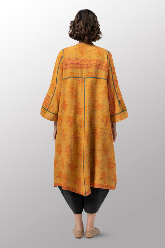 VINTAGE SILK GEORGETTE KANTHA A-LINE COAT - sg2309-0001a -