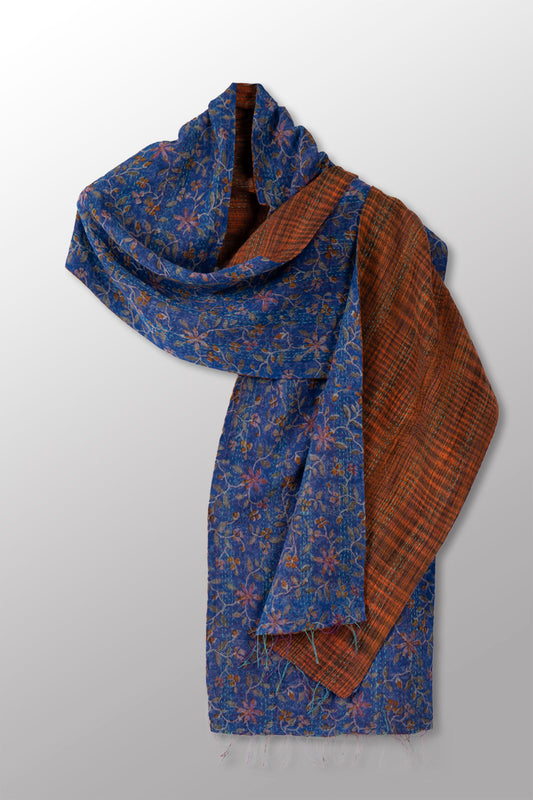 VINTAGE SILK GEORGETTE COTTON KANTHA SCARF SHORT - gc2805-blu -