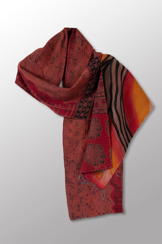 VINTAGE SILK GEORGETTE COTTON KANTHA SCARF SHORT - gc2805-org -