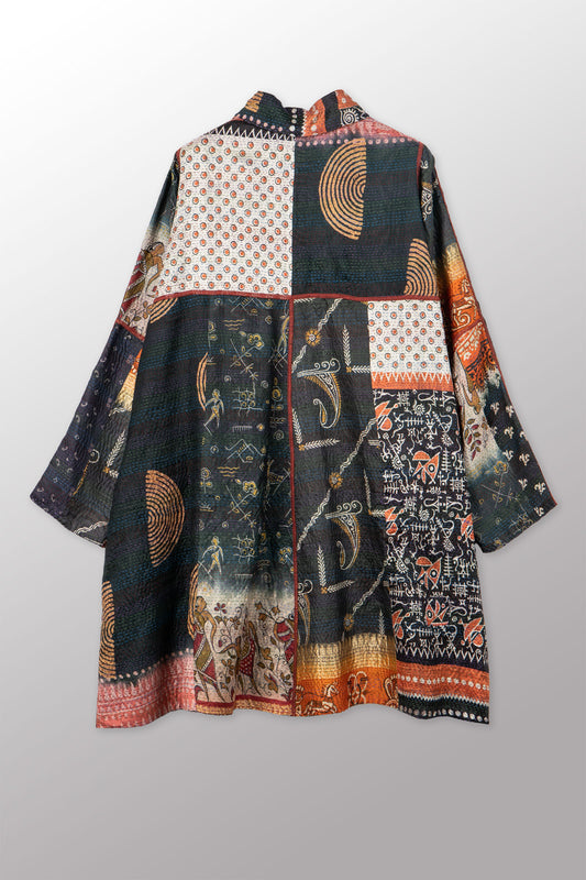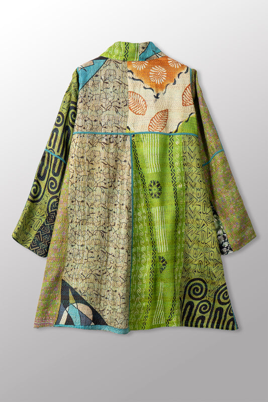 VINTAGE SILK KANTHA A-LINE DUSTER - sv2311-0012a -