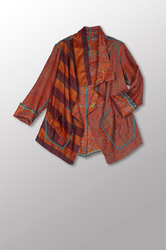 VINTAGE SILK KANTHA A-LINE DUSTER - sv2311-0013a -