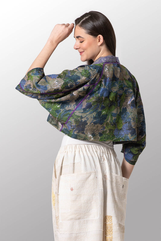 VINTAGE SILK KANTHA 3/4 SLV. CROP TOP MIO - sv2538-0011a -