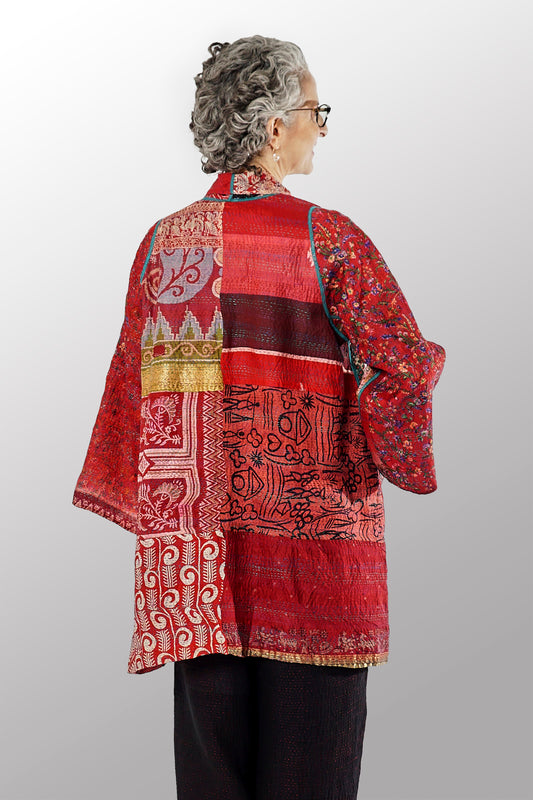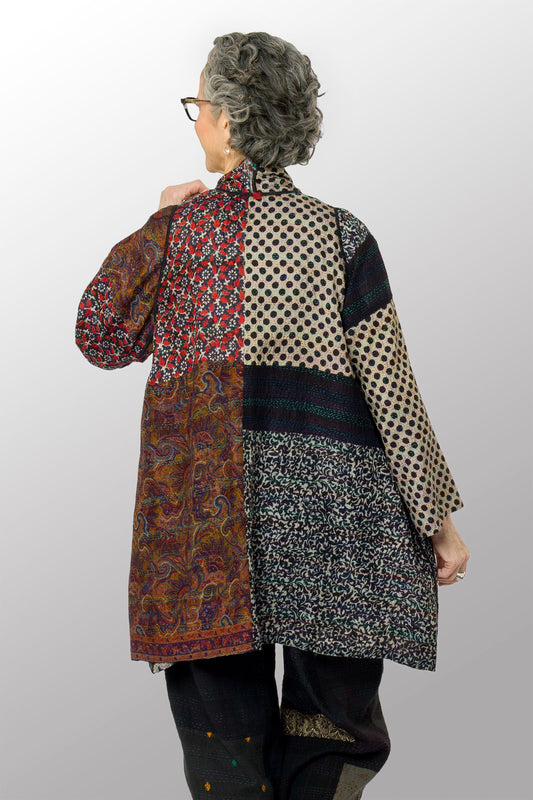 VINTAGE SILK KANTHA A-LINE JKT - sv2003-0377a -