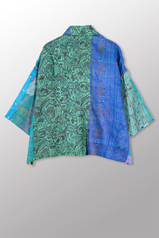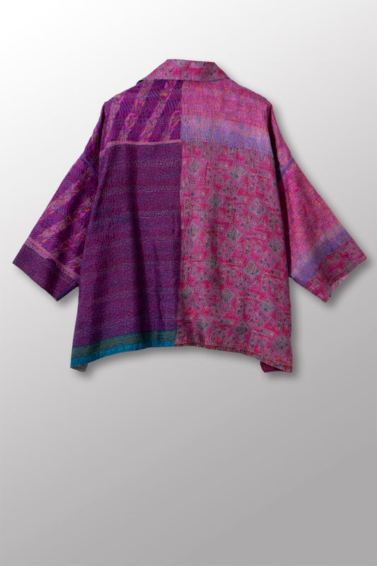 VINTAGE SILK KANTHA CROPPED TENT SHIRT - sv2596-0003a -