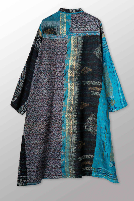 VINTAGE SILK KANTHA KAFTAN COAT - sv2343-0001m -
