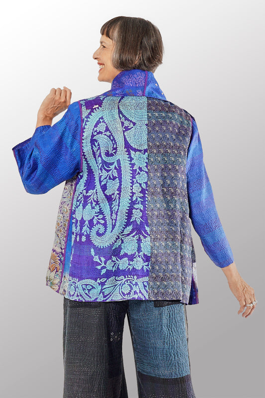 VINTAGE SILK KANTHA FLARE JKT - sv2010-0051a -