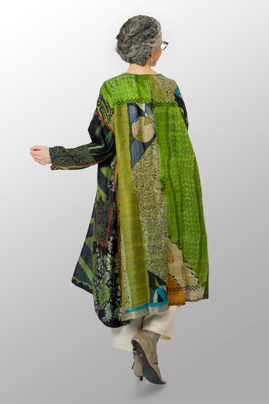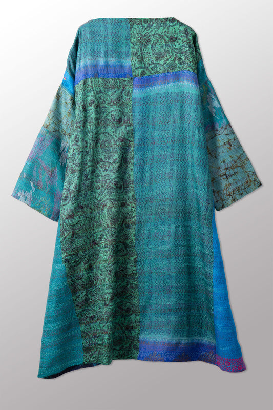 VINTAGE SILK KANTHA LONG DUSTER - sv2328-0006a -