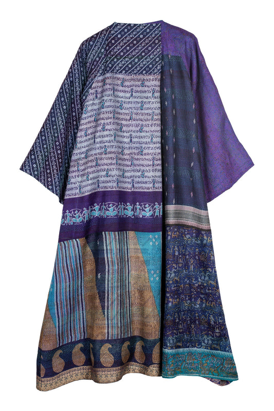 VINTAGE SILK KANTHA KIMONO MAXI - sv2318-0008a -
