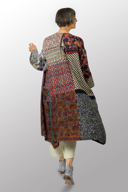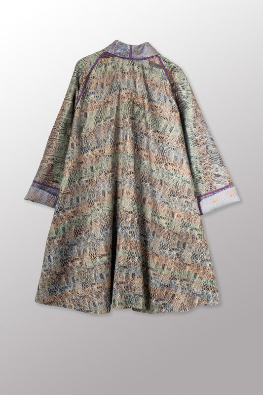 VINTAGE SILK KANTHA LONG CAPE - sv2841-mlt -