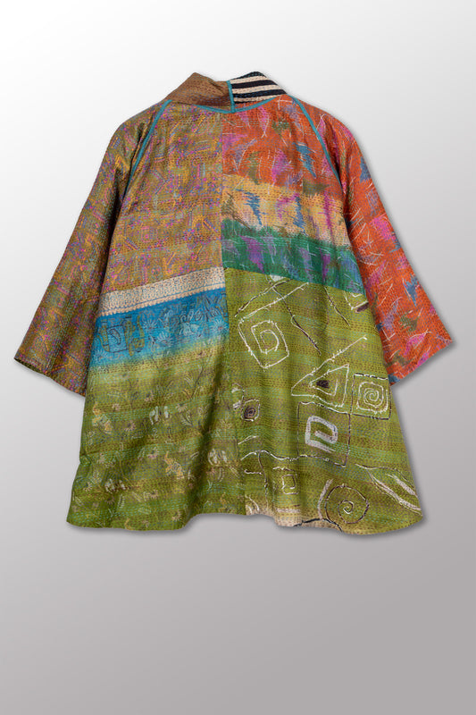 VINTAGE SILK KANTHA MANTLE - sv2069-0002a -