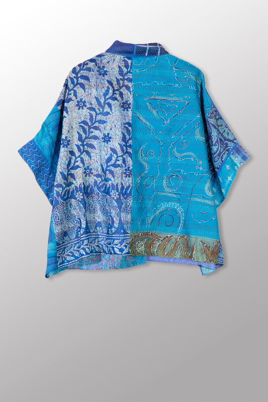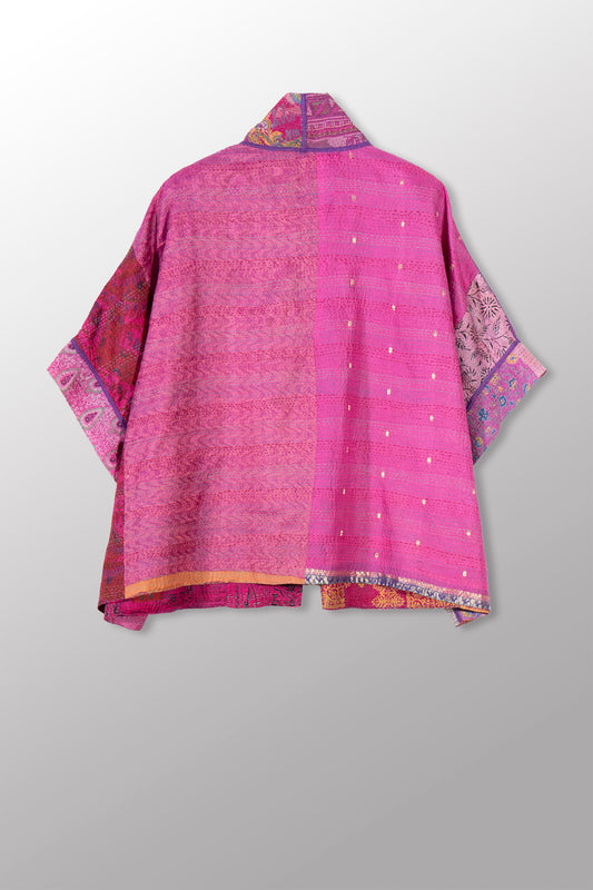 VINTAGE SILK KANTHA MINI PONCHO - sv2060-0009a -